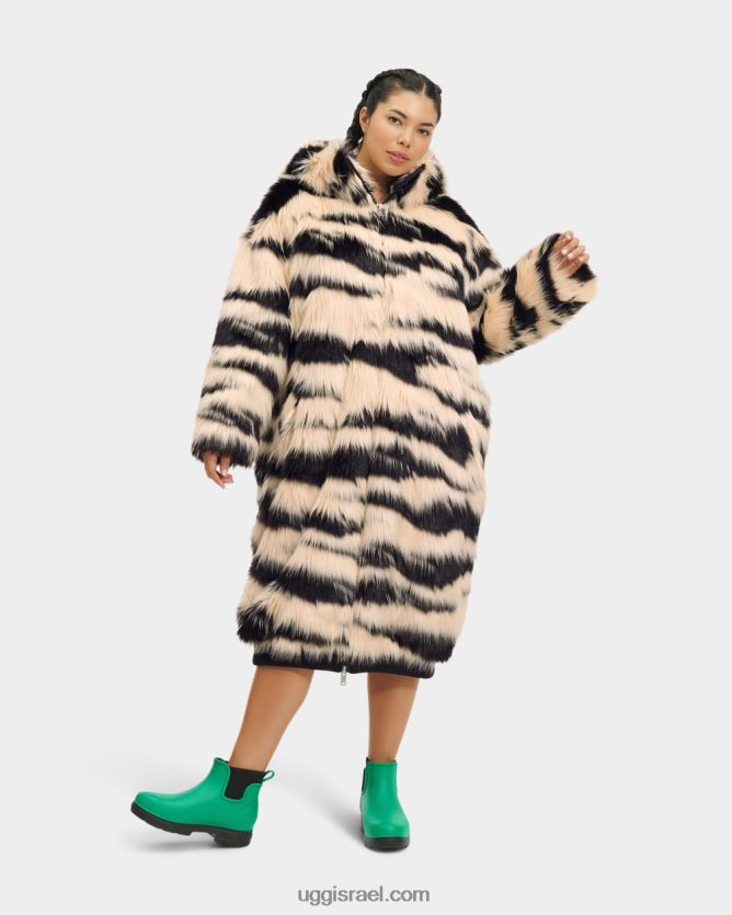 מעיל פרווה מלאכותית בגודל קוקו נשים UGG VLDPRV1275 שחור ושמנת
