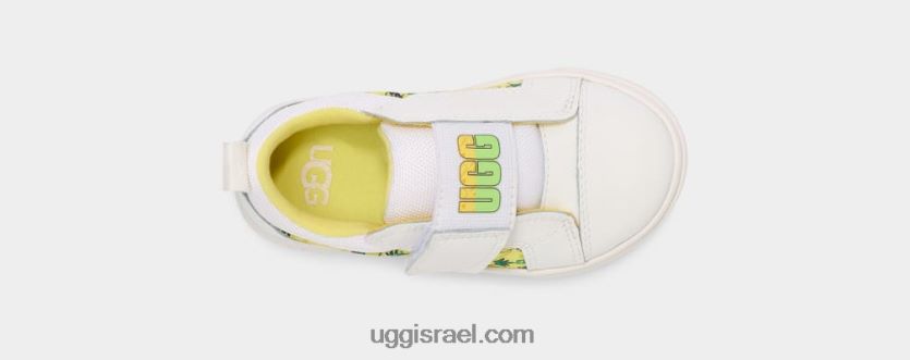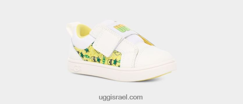 עשויה מטקסטיל רך, עור וסיבי פוליאסטר ממוחזרים, סתימת אננס נמוכת רנון מוכנה להרפתקאות ארוכות ומלאות משחק - בפנים או בחוץ. הסגנון המתכוונן והקל שומר על רעננות רגליים קטנות עם בטנה אנטי-מיקרוביאלית. הדפס אננס חוגג את חודשי הקיץ החמים.